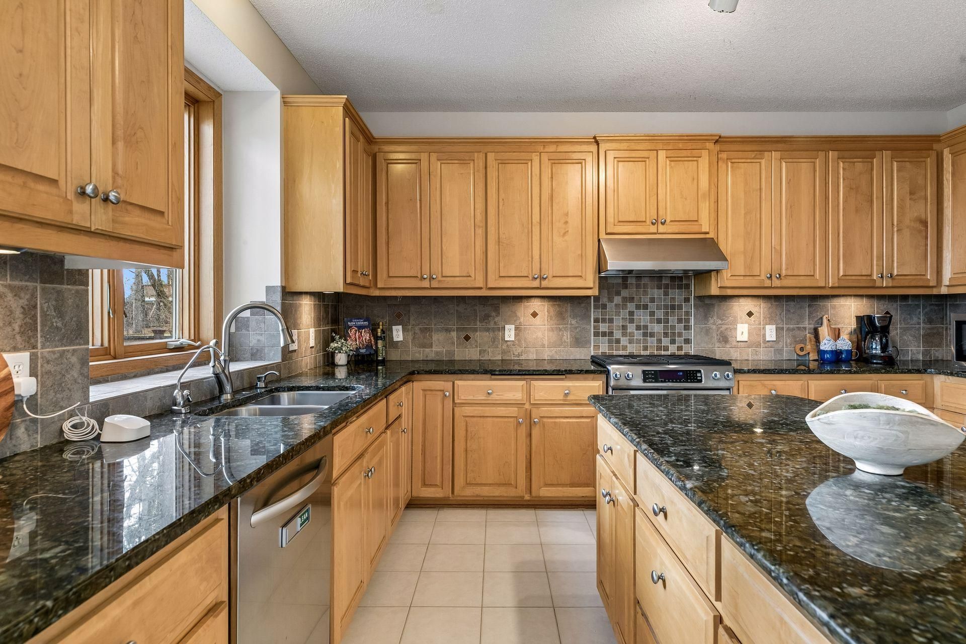 Nestled on a quiet cul-de-sac in the highly desirable Powers Lake community and surrounded by beautiful pine trees, this stunning two-story home offers privacy, nature, and an exceptional setting. The open floor plan is filled with natural light and features a vaulted great room with a fireplace and oversized picture windows. The kitchen is designed for both everyday living and entertaining with stainless steel appliances, granite countertops, tile backsplash, and a large center island, all flowing seamlessly into the lovely, vaulted sunroom.At the front of the home, formal living/flex space and a dining room with a bay window provide wonderful versatility. A private office on the main level is ideal for working from home and could also serve as an additional bedroom. The generous mudroom and separate laundry room with cabinetry add convenience and function.Upstairs, you'll find four bedrooms and a full bathroom, including a spacious primary suite with a tray-vault ceiling, oversized walk-in closet, and a large bath with a long double-sink vanity, soaking tub, and separate shower. The unfinished lower level offers a fantastic opportunity to create the space of your dreams, with room for an additional bedroom with egress window and a rough-in for a future bathroom.Additional highlights include new carpet 2026, New interior paint (2026), newer furnace, A/C, water softener, and water heater. Additional features include a 3-car garage, maintenance-free deck, shed, wood fence, paver walkway, and gutters. All of this in a highly convenient Woodbury location close to shopping, restaurants, and everyday amenities. A must see!