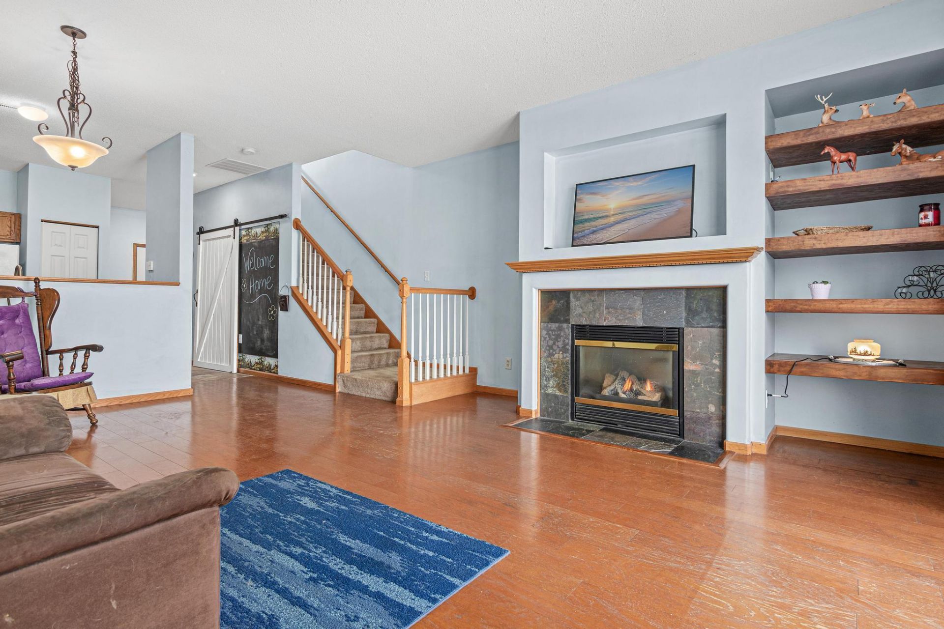 Adorable townhouse ready for its new owner! Only relocation makes this available! Open main level floor plan allows you to customize how you use your new space with gas fireplace to keep it all cozy. Transom style sliding glass door to patio and extensive green space provides lots of light. Plus so many storage options! lots of closets plus custom barn door pantry. Oversized bedrooms with abundant closet space and a Jack and Jill bath optimizes your getting ready spaces with private vanities for each bedroom. The nook at the top of the stairs has been a mini library, homework cubby and office. What will you use it for? Upper level laundry makes that chore much more convenient. Nearby access to 169 for your commute. Near lots of shopping, schools and restaurants, parks, Mystic Lake and Canterbury entertainments! Schedule your showing now! Quick close possible!