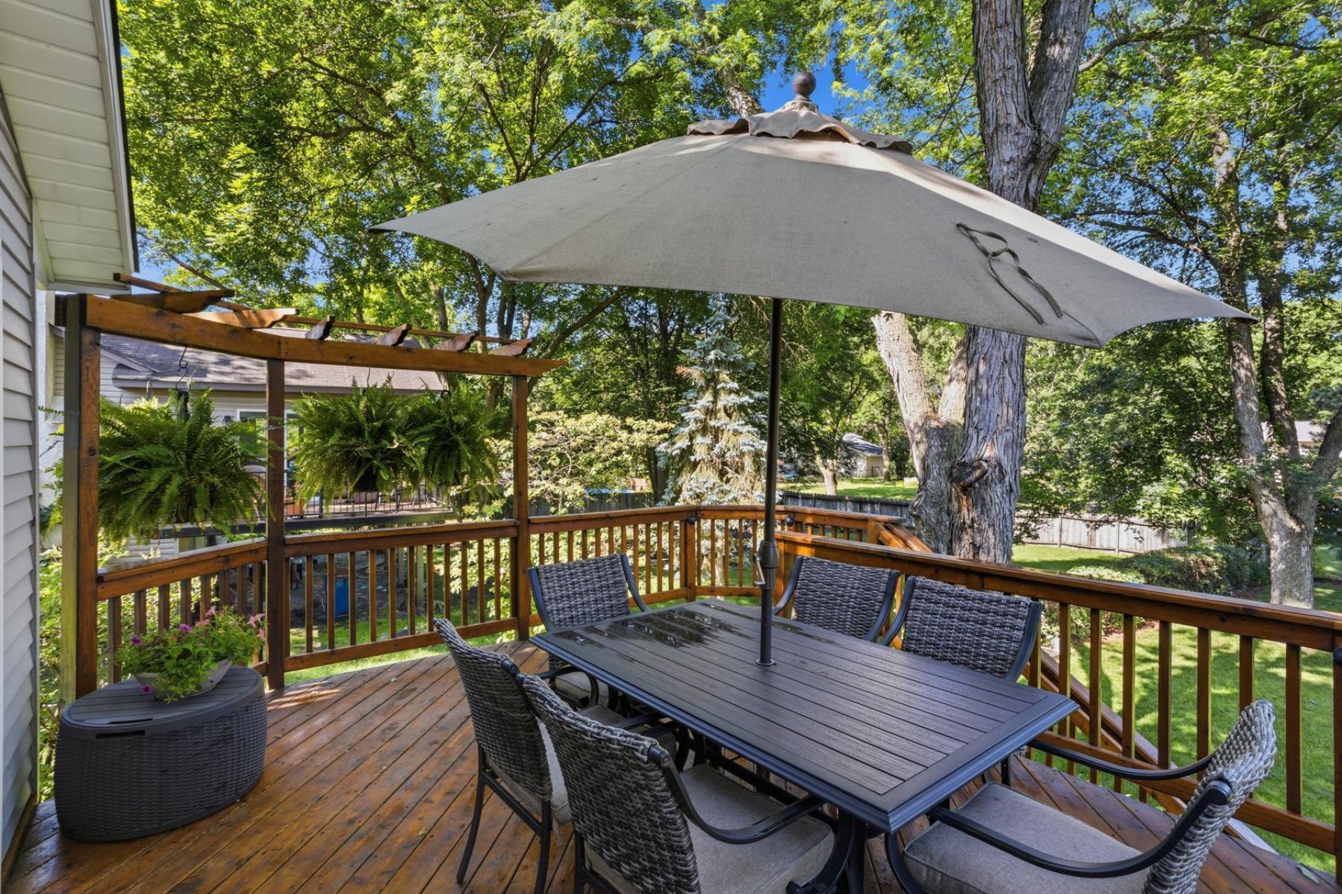 Imagine enjoying this outdoor space or entertaining here this summer! This home features a beautifully landscaped, fully fenced yard with a spacious deck and lower-level walk out to your stamped concrete patio below. Inside you'll find this well-maintained home offers new flooring and has been painted throughout. The home features a wood burning fireplace, two bedrooms on each level and plenty of storage space. The washer and dryer are just a few years old. The roof was replaced in 2023 and the driveway to be resealed (4/27). Nearby this beautiful home you will find the Dred Scott Fields where you can enjoy pickleball, basketball, baseball and mini golf. Hyland Park Reserve where you'll find Chutes & Ladders Park is just moments away. Nearby you'll also find Olympic Hills and the Minnesota Valley Country Club. Enjoy Perk Up Kitchen, the newly opened Pig Ate My Pizza & Scoops Ice Cream. With easy access to 169 and 494 you are centrally located. This home is move in ready for you to enjoy your next chapter!