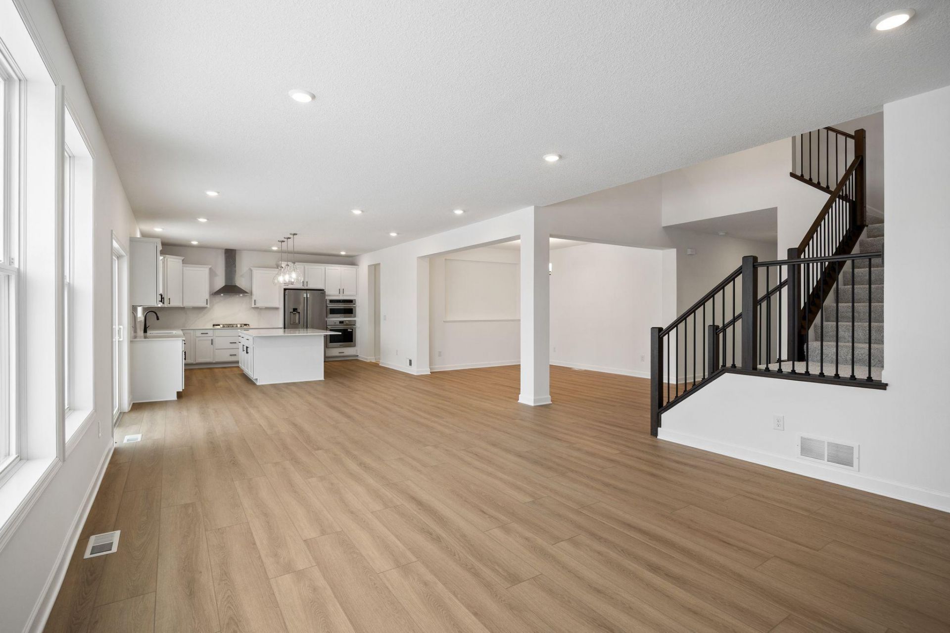 This home is under construction and will be complete in June! Step inside this exceptional Amber Fields home and experience a blend of comfort and sophistication across every thoughtfully crafted space. The main level welcomes you with a bright front office, leading into an expansive open-concept Great Room anchored by an elegant electric fireplace. Entertain with ease in the sunlit breakfast area and the gourmet kitchen, where quartz countertops, stainless steel appliances and a sleek exhaust hood elevate every meal. A separate dining room offers the perfect setting for both lively gatherings and quiet dinners. Upstairs, a central loft is surrounded by three spacious secondary bedrooms?each featuring a walk-in closet and direct bath access?while the luxurious owner's suite impresses with a soaking tub, separate shower and generous walk-in closet. Enjoy the convenience of upper-level laundry and a large unfinished basement, giving you ample opportunity for customization to best suite your home needs. With a coveted three-car garage and sought-after upgrades throughout, this home is sure to attract attention from discerning buyers?don't miss your chance to make it yours!