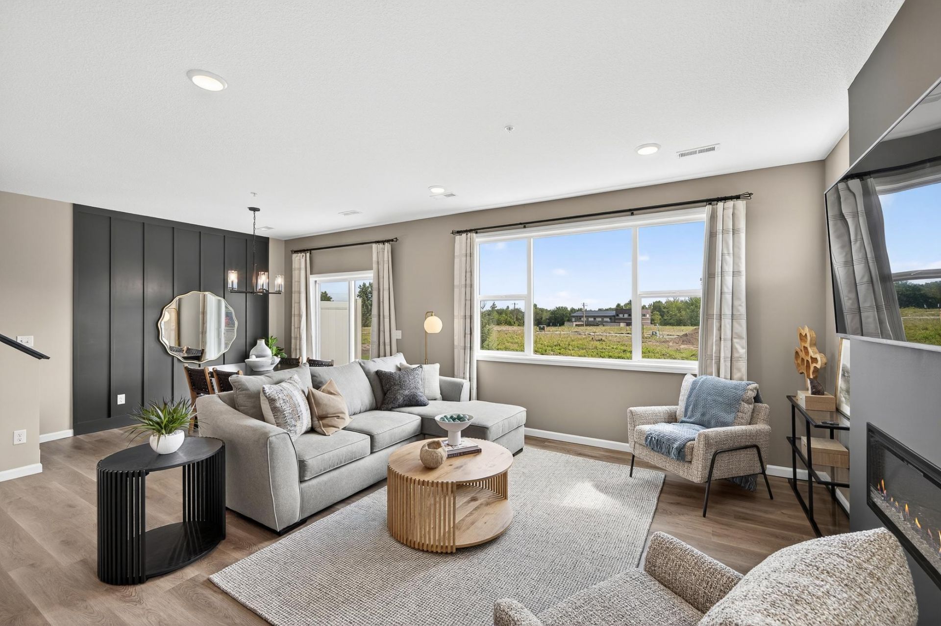 MODEL FOR SALE! Seller offering contribution toward buyer's closing costs! JP Brooks presents the Grandview END UNIT MODEL townhome plan in Corcoran's Hope Meadows community?a brand-new townhome development near Pheasant Acres Golf Course and just a short distance from Elm Creek Park Reserve. Experience an unmatched outdoor lifestyle with miles of trails, lakes for kayaking, and year-round activities. Enjoy peaceful living with the conveniences of nearby shopping, dining, and easy access to major roadways connecting you to the Twin Cities and beyond. The main level features a spacious living room with an electric fireplace, open dining area and roomy entryway. The kitchen showcases white cabinetry with stainless steel appliances, a walk-in pantry, tile backsplash, gas stove, large center island with single basin sink and quartz countertops throughout the home. Half Bathroom on main level. The upper level includes a loft area, laundry room and 4 Bedrooms with walk-in closets. The primary suite offers a vaulted ceiling with ceiling fan, double sink vanity, luxury tiled shower, linen closet and a huge walk-in closet! The exterior of this end unit offers an exclusive side yard in addition to it's 10'x6' backyard patio for outdoor enjoyment and HOA-maintained landscaping and snow removal for low-maintenance living. Onsite-finished trim for a high-quality look. Come tour today!