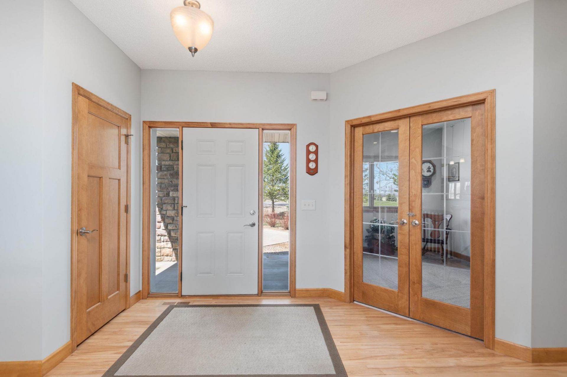 Prepare to be impressed! This beautiful 4 bedroom, 3 bathroom executive rambler sits on a 4+ acre lot with stunning views. As you step into this home, you'll appreciate the careful consideration that went into the design of this home. The main living area is perfect for entertaining or a quiet evening at home. The granite kitchen with center island, breakfast counter, stainless appliances, hardwood floors and updated lighting flows into the dining area and out to the deck. The Great Room features a gas fireplace with stone surround and great views of the backyard and woods. Relax in the sunroom and enjoy spectacular sunsets. The Owner's suite features a walk-in closet, full bath with double vanity, jetted tub and separate shower and more great views. There are 2 more bedrooms and a full bath on the main level, plus a mud/laundry room. The lower level with in-floor heat has the 4th bedroom, a Family Room, den and flex space that has laundry hook-ups and could be a great studio or craft room. This home is drenched in daylight with beautiful views from every room. There's a great backyard with lots of room to run & play and a 15-zone irrigation system. Walk through the cleared woods and discover the firepit and picnic areas. There's a composite deck on the upper level and a great patio on the walk-out level. The upper level garage is over sized & heated . The 3rd garage with in-floor heat is in the back and makes for great storage or workshop. Plus Anderson windows & patio doors. Recent improvements include new/newer: driveway, retaining wall, furnace/AC, carpet, pressure tank, water softener & filtration system, kitchen updates, appliances and more. This home is a must-see. Don't miss out!