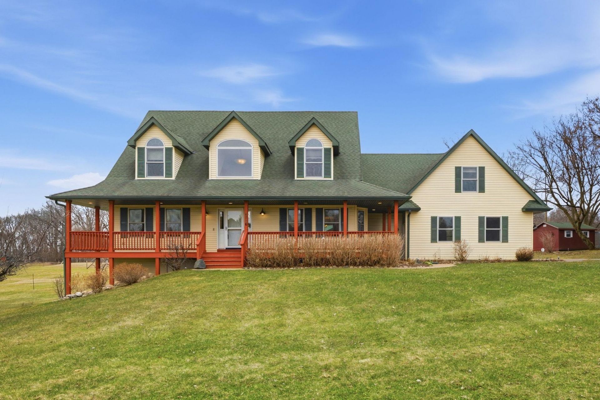 10 acres with a horse set-up in Delano Schools! Fantastic 3+ bedroom, 3 bath story & a half with main level living. Main floor laundry and primary suite with private bath including heated tile floors, jetted tub, separate shower and dual sinks. Hardwood & tile floors, stainless steel appliances, formal and informal dining, fireplace, 17' vaulted ceiling & a wall of windows allows an abundance of natural light. Secondary primary suite in the upper level, bonus room over the finished 3-car insulated & heated garage, tankless water heater, zoned heat, steel siding, a great wrap around porch & large deck to enjoy the views. Unfinished lower level with in-floor heat just waiting for your finishing touches for instant equity. 56x36 outbuilding includes 4 box stalls, concrete floors, water, electric, insulated ceiling & lean-to. Outdoor riding ring, 4 separate pastures, a 16x12 chicken coup with outdoor runs, garden beds & more.