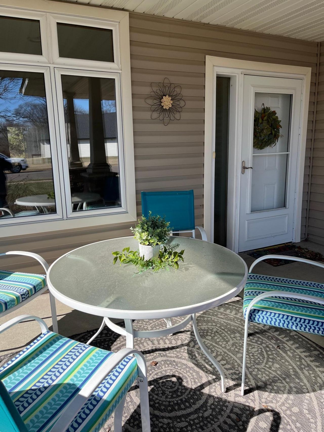 Fabulous, one level living with over 1500 sq ft to enjoy! Open concept with spacious rooms, fireplace, vaulted ceilings and lots of natural light. Stainless steel appliance, all new lighting, new vinyl plank flooring in kitchen, entryway, bathrooms and laundry room. New quartz counter tops in kitchen and granite in bathrooms. PLUS, new roof being installed! Cozy south facing sun room with attached patio. Primary bedroom has attached 3/4 bath and large walk in closet. Attached 2 stall garage with a large finished attic area for storage. No HOA, monthly contract for $60 for snow removal and lawn care. Great location to grocery store, gas stations, restaurants and retail. Enjoy easy living in this move in ready gem!