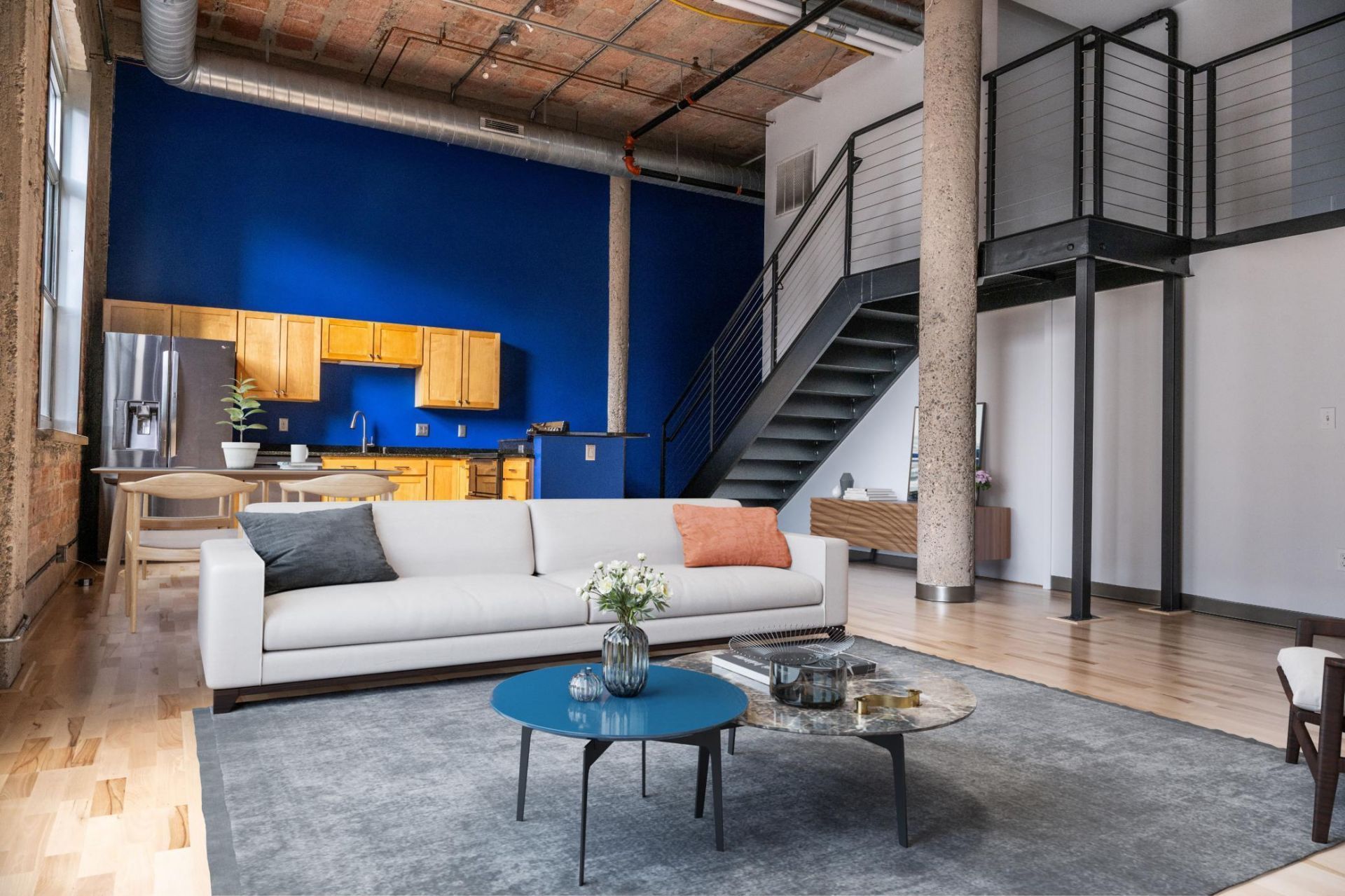 Industrial Soul Meets Modern Luxury. Experience the pinnacle of loft living in this two-level urban retreat. Perched on the 6th floor of the historic 1926 Sexton building, Unit 623 perfectly balances raw industrial character with sophisticated modern upgrades. Enjoy fresh updates throughout, including new flooring and paint that complement the towering 20-foot concrete ceilings, exposed brick, and industrial ductwork. The open-concept layout is drenched in natural light from oversized windows, creating a functional flow between the kitchen, dining, and living areas that makes everyday living effortless.The kitchen features maple cabinetry, stainless appliances, and split-level granite countertops, perfect for hosting. Retreat to the upper-level primary suite with custom closet built-ins and a private full bath. Cozy up by the gas fireplace or step through sliding glass doors to your private balcony for morning coffee or evening drinks.Located one block from Skyway access and steps from the Light Rail, US Bank Stadium, and the Mill District. Enjoy rare perks like USI Fiber internet (included in HOA), two heated underground tandem parking stalls (#130 and #125), and in-unit laundry. Building amenities include a shared rooftop deck with grills and panoramic skyline views, secure bike storage, and a package room. Whether walking to the Stone Arch Bridge or catching a flight via the nearby train, everything is within reach. Welcome to your new chapter at The Sexton!