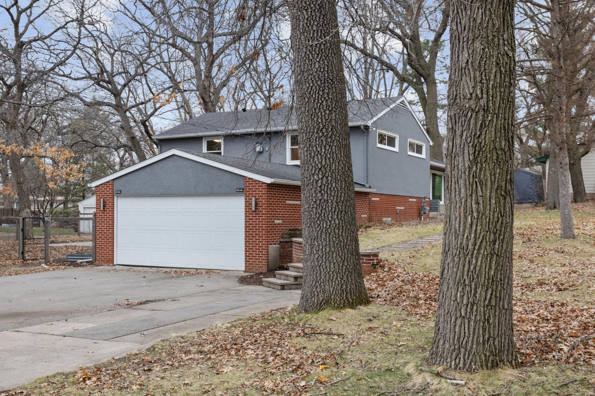 Embrace the perfect harmony of mid-century character and sophisticated modern updates in this stunning four-level split, prominently situated on a lush 0.42-acre corner lot. Located within the prestigious Mahtomedi School District, this residence serves as a serene suburban sanctuary with the benefit of a quick commute and easy access to local gems. The main level welcomes you with an expansive, light-filled living room anchored by a timeless fireplace, flowing effortlessly into a completely reimagined kitchen outfitted with sleek stainless steel appliances and a charming adjacent dining area.The thoughtful layout continues upstairs, where you'll find the convenience of three spacious bedrooms on the same level with a full bathroom, including a new vanity. The walkout lower level includes the mudroom/laundry room, 3/4 bathroom, and access to the oversized workshop/garage area! The basement adds a final layer of versatility, offering an inviting second family room with a cozy electric fireplace, a dedicated home office niche, and the utility room. Outside, the fully fenced backyard and concrete patio create an idyllic stage for outdoor entertaining and private relaxation.Walk to downtown Mahtomedi, grab a bite to eat at a local restaurant, and then head over to Willernie Beach to watch the sunset. This home is move-in ready and is just awaiting your visit.