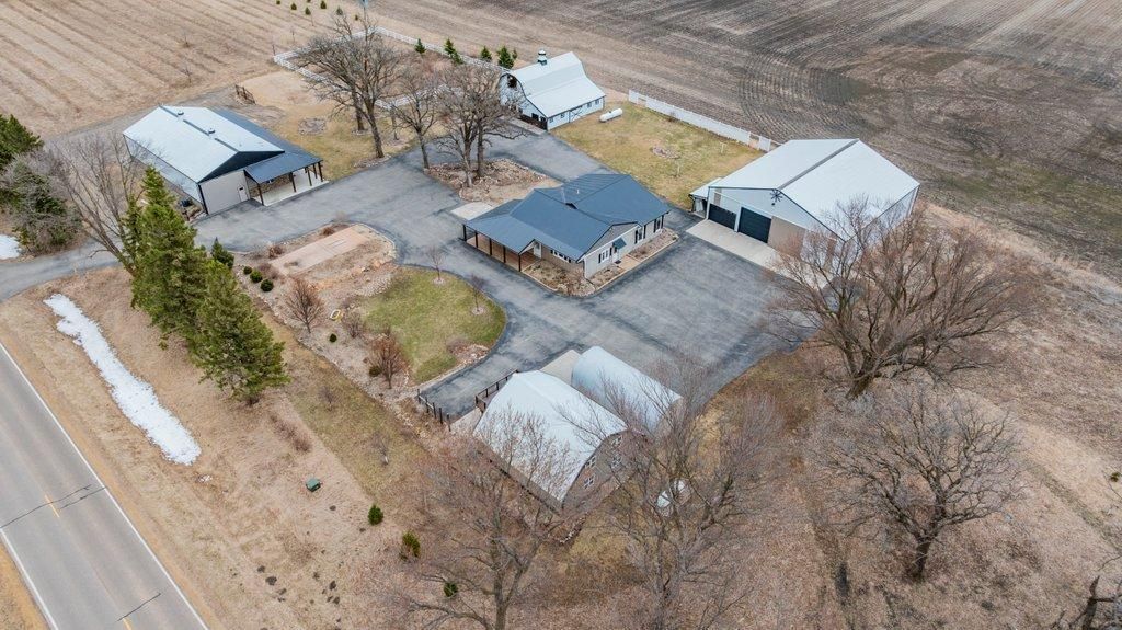 Endless opportunity for the perfect work/live business in Austin Minnesota with this five building property on 7.5 acres. All buildings on the property were renovated in 2018 to add 5,185 square feet of live/work space. The main home features two bedroom and two bathroom with 1,920 square feet of high-end renovated space. This includes a primary suite with beautiful barn wood accents, double-sided fireplace, boutique style walk-in closet, and incredibly impressive primary bath. The bathroom is designed with an ADA compliant shower, claw foot bathtub, double vanity, and master bedroom corner laundry. The 2,474 square foot showroom/event center includes a gourmet kitchen, upstairs bedroom, and two bathrooms. The shop includes ample storage, a car lift, and RV parking. Also included is a barn and greenhouse space. This property would make a great event venue, kennel facility, cannabis production, light industrial business HQ, and much more!